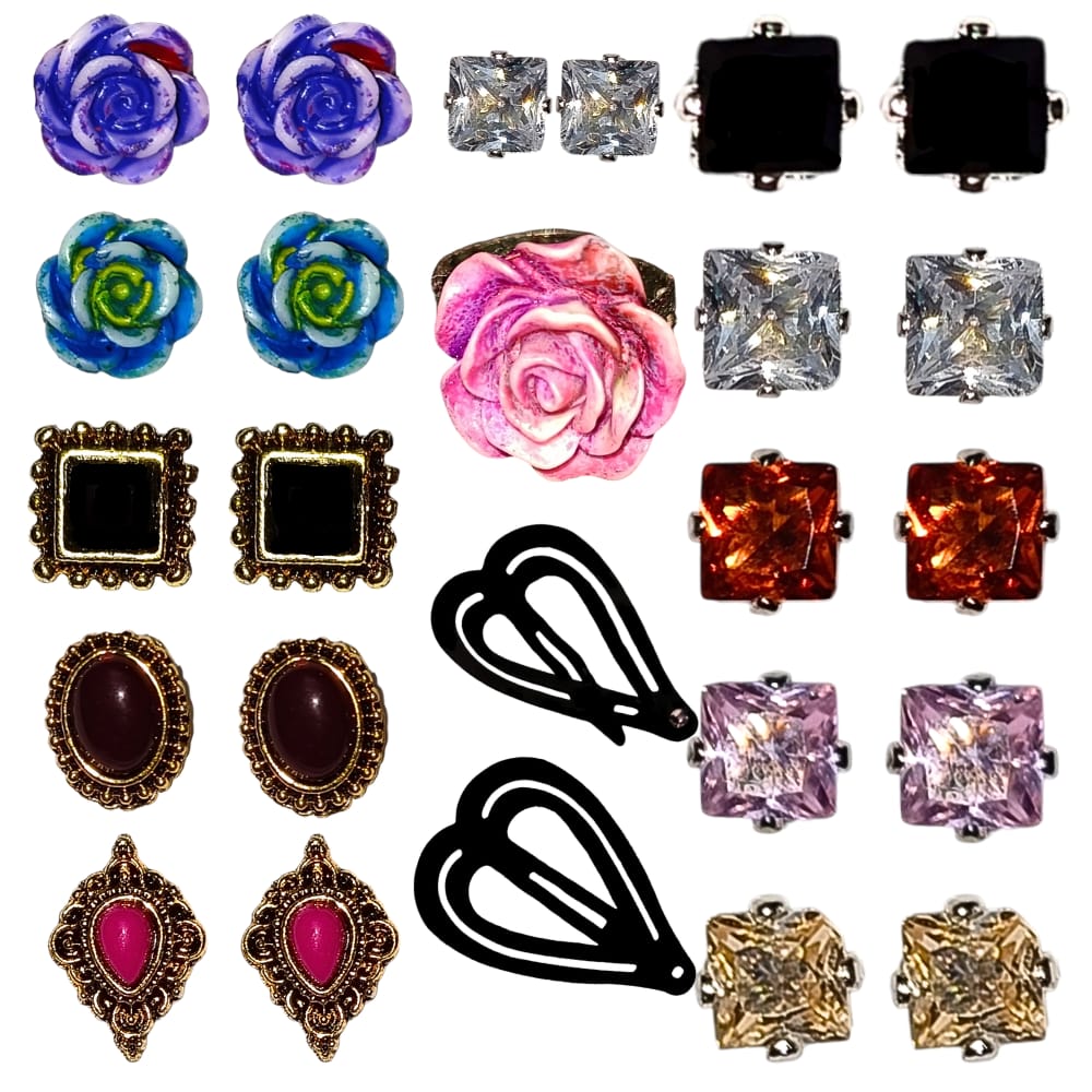 Eleven Earrings with Clips and Ring Combo